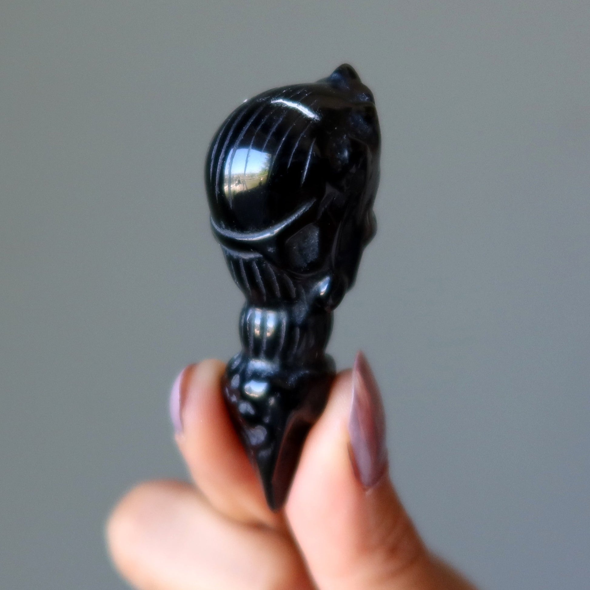 Ready to release bad vibes? Your Black Obsidian sacrificial wand cuts ties with negative forces. Echoing the style of a Tibetan phurba dagger, this ritualistic protection stone delivers swift results.