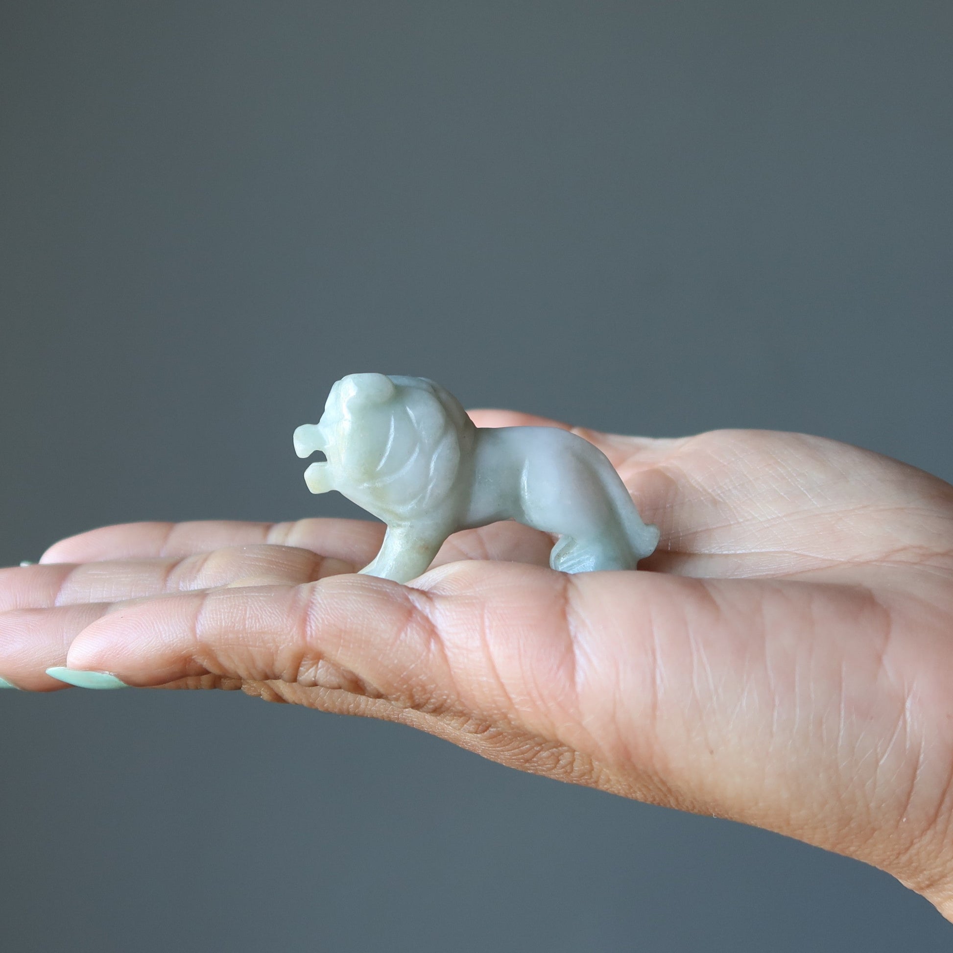 Jade Lion Lucky Life Leader Green Jadeite Crystal Animal Figurine