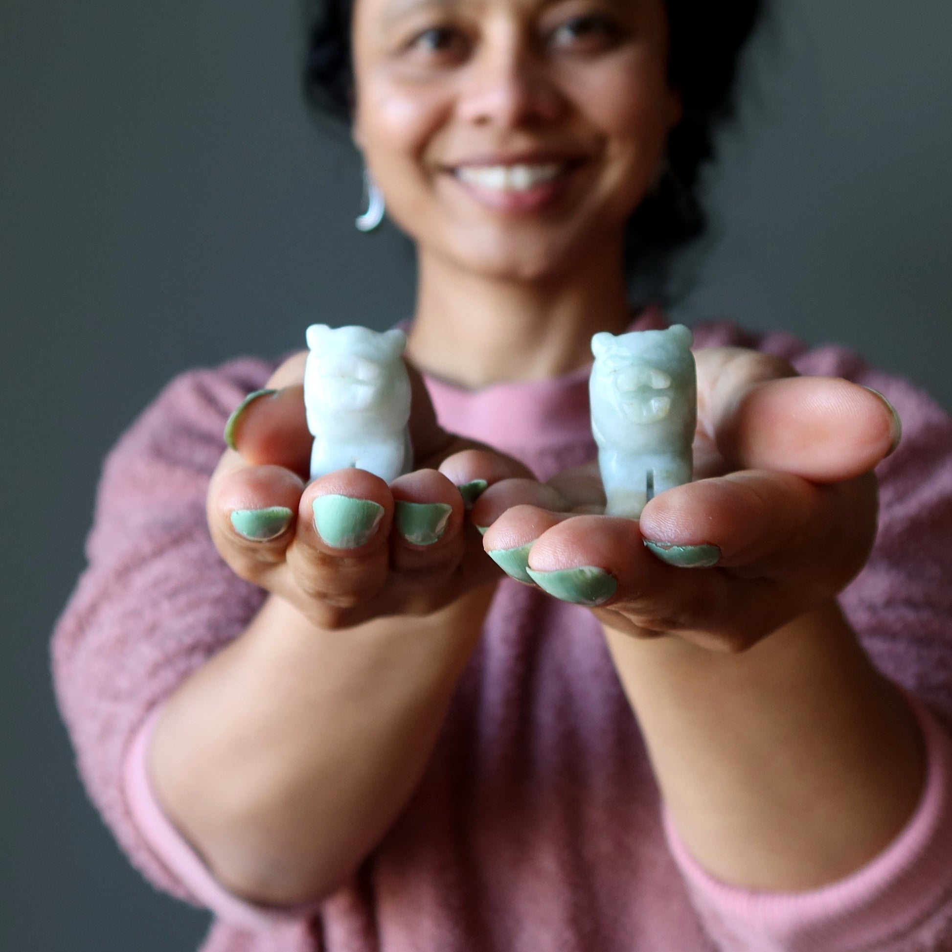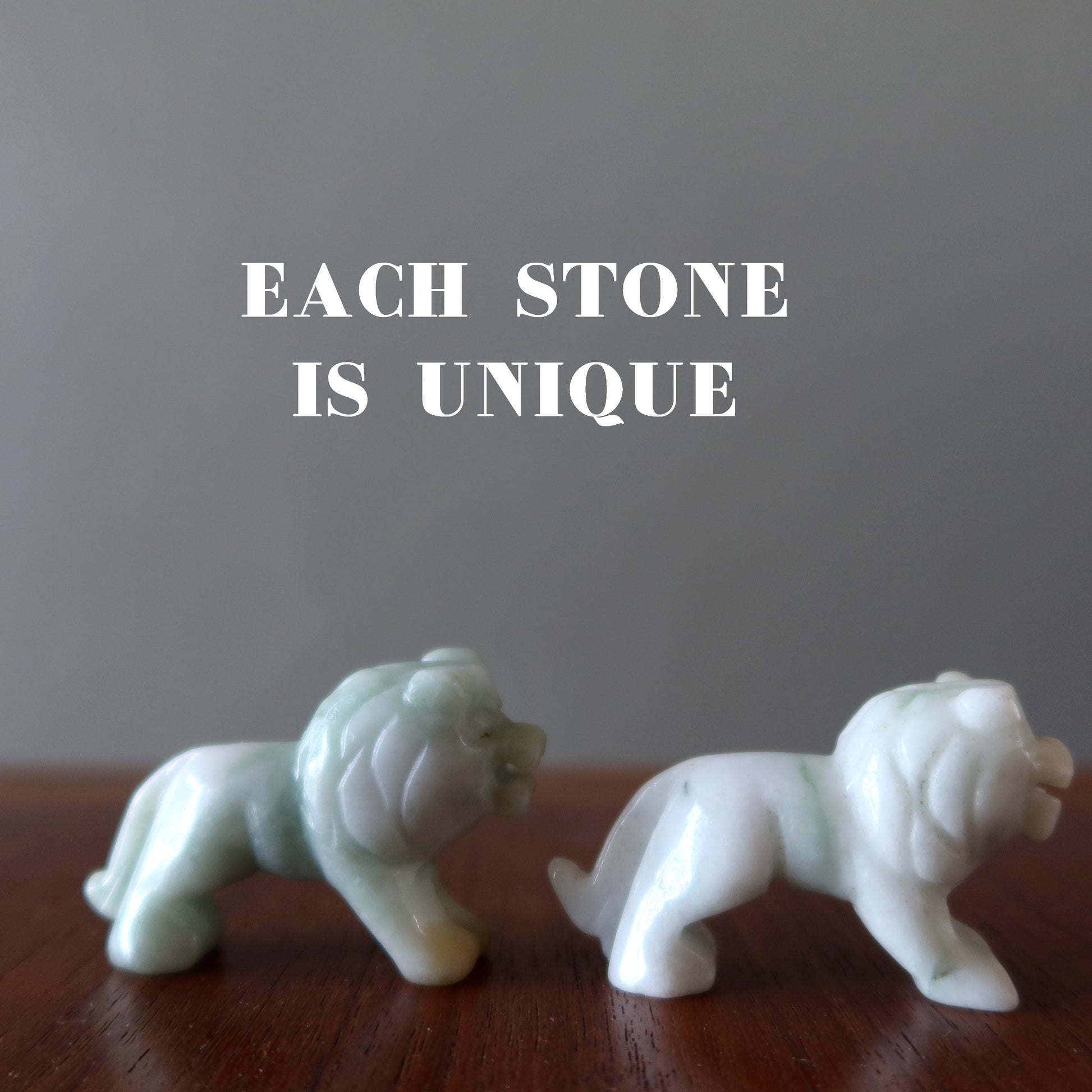 Your new lion is hand-carved from natural Burmese Jade. This is a creamy green Jadeite Jade varying in colors and inclusions.
