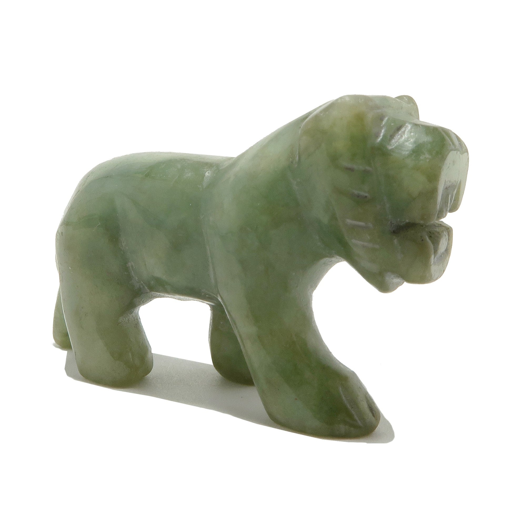 More You have selected a natural and untreated Jadeite Jade from Myanmar. This is a creamy green gemstone that varies in color and inclusions. Each tiger figurine is unique.