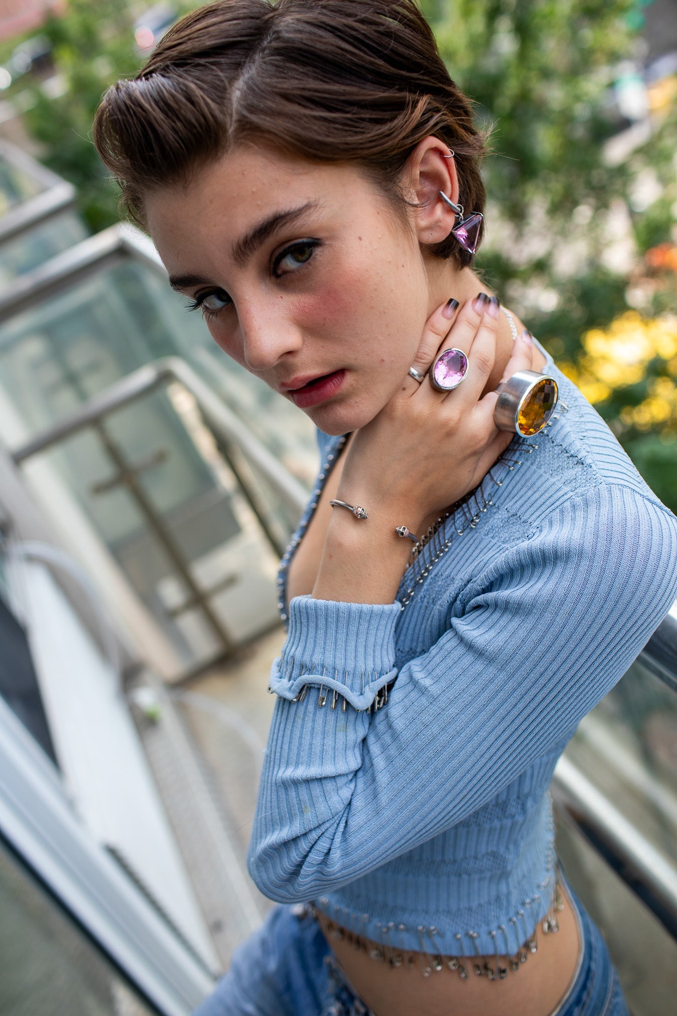 - SOLID STERLING SILVER AND DELICATE AZALEA PINK GLASS.