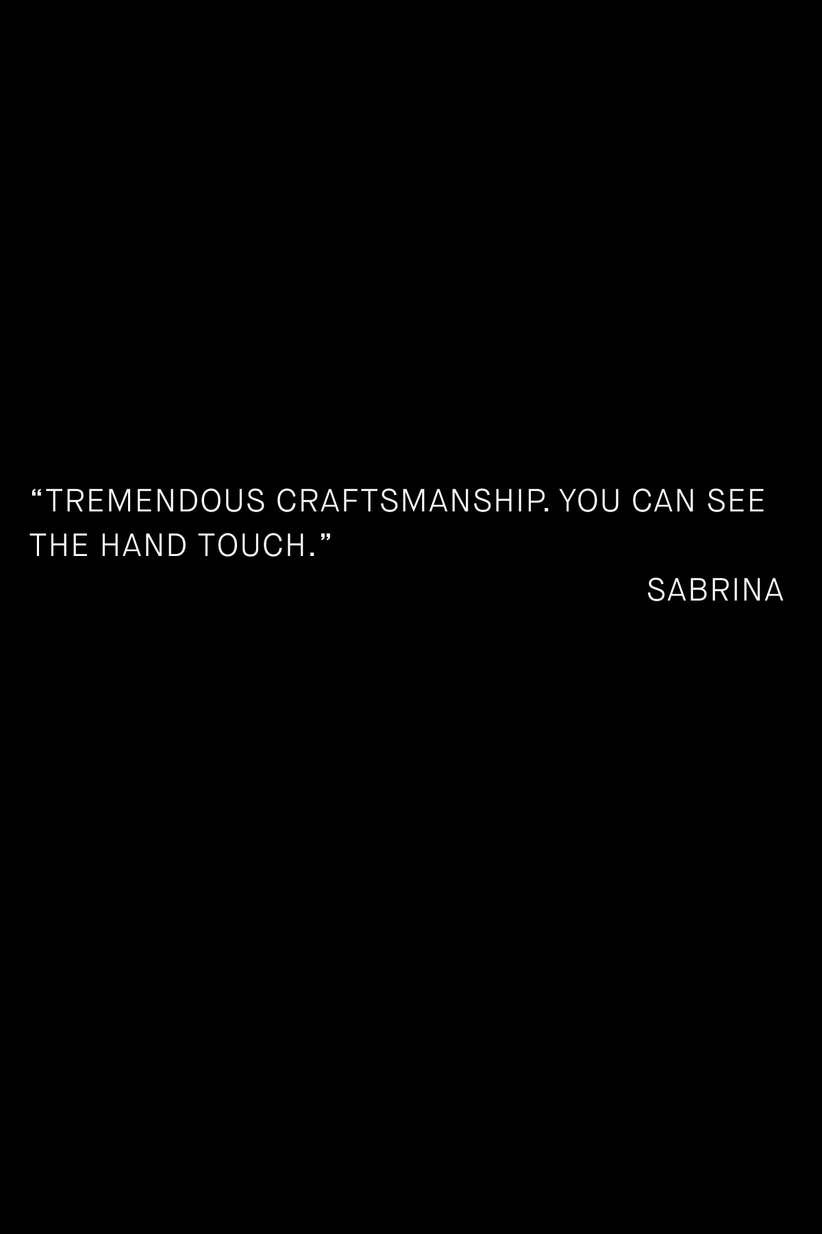 Many of our pieces are crafted to order and may take up to 6 weeks to ship. Items already in our archive will ship right away. If you have any questions, chat with us anytime.
